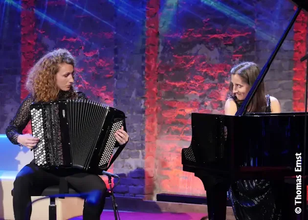 Im Konzert am Samstagabend begrüßen wir das aus der Provence stammende Avès Duo. Die Akkordeonistin Ambre Vuillermoz und ihre langjährige Partnerin Elena Soussi haben nicht nur bereits bei ARTE-TV für Aufsehen gesorgt, sondern präsentieren in ihrem Programm „Jeux de timbre“ neben neuen Werke für die Besetzung Akkordeon und Klavier auch Arrangements von Maurice Ravel und Igor Stravinsky. Zur Webseite: Konzert Avès Duo |
